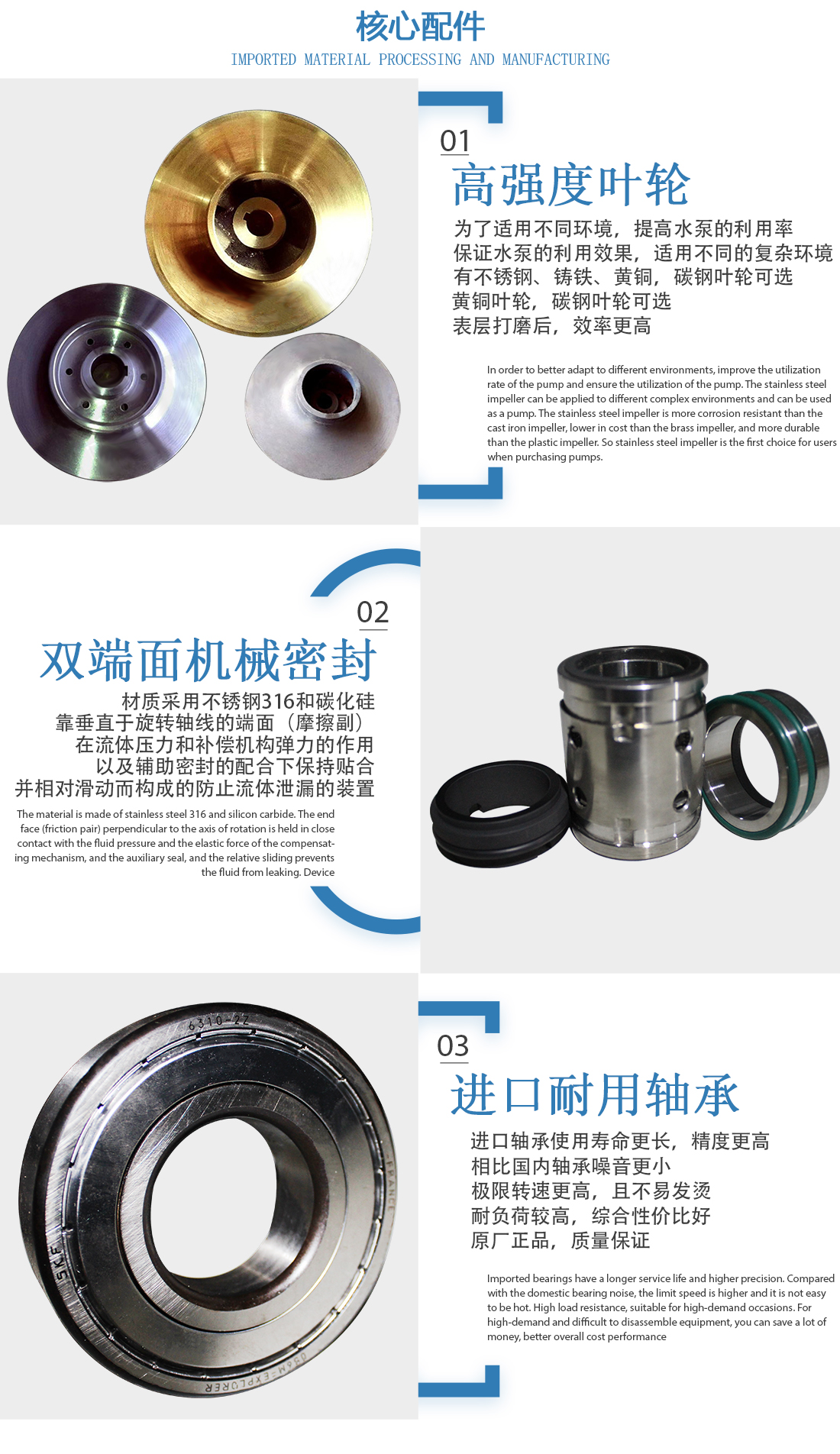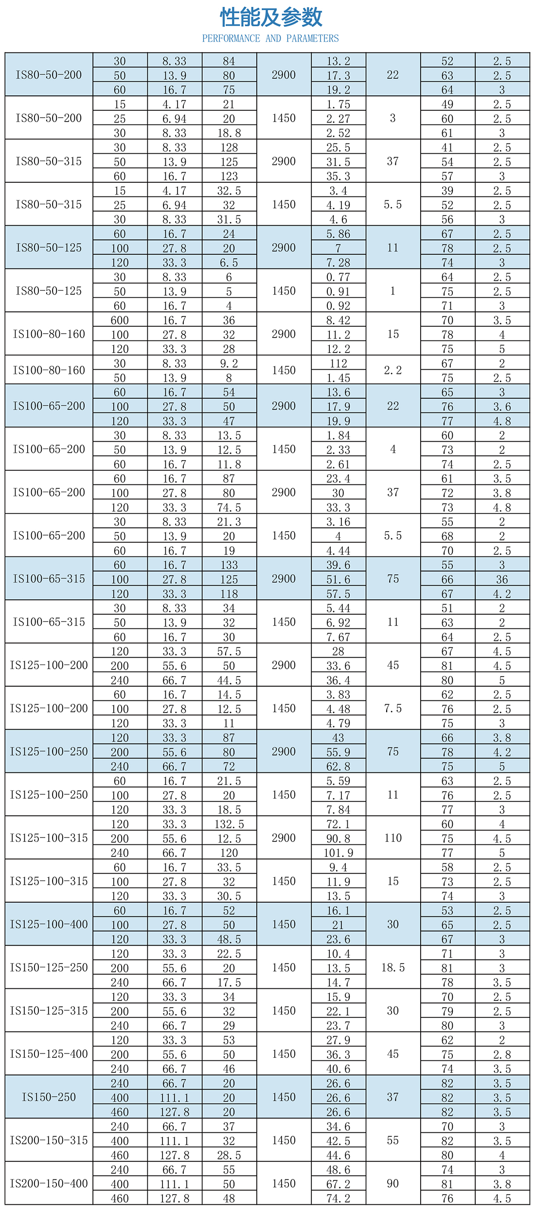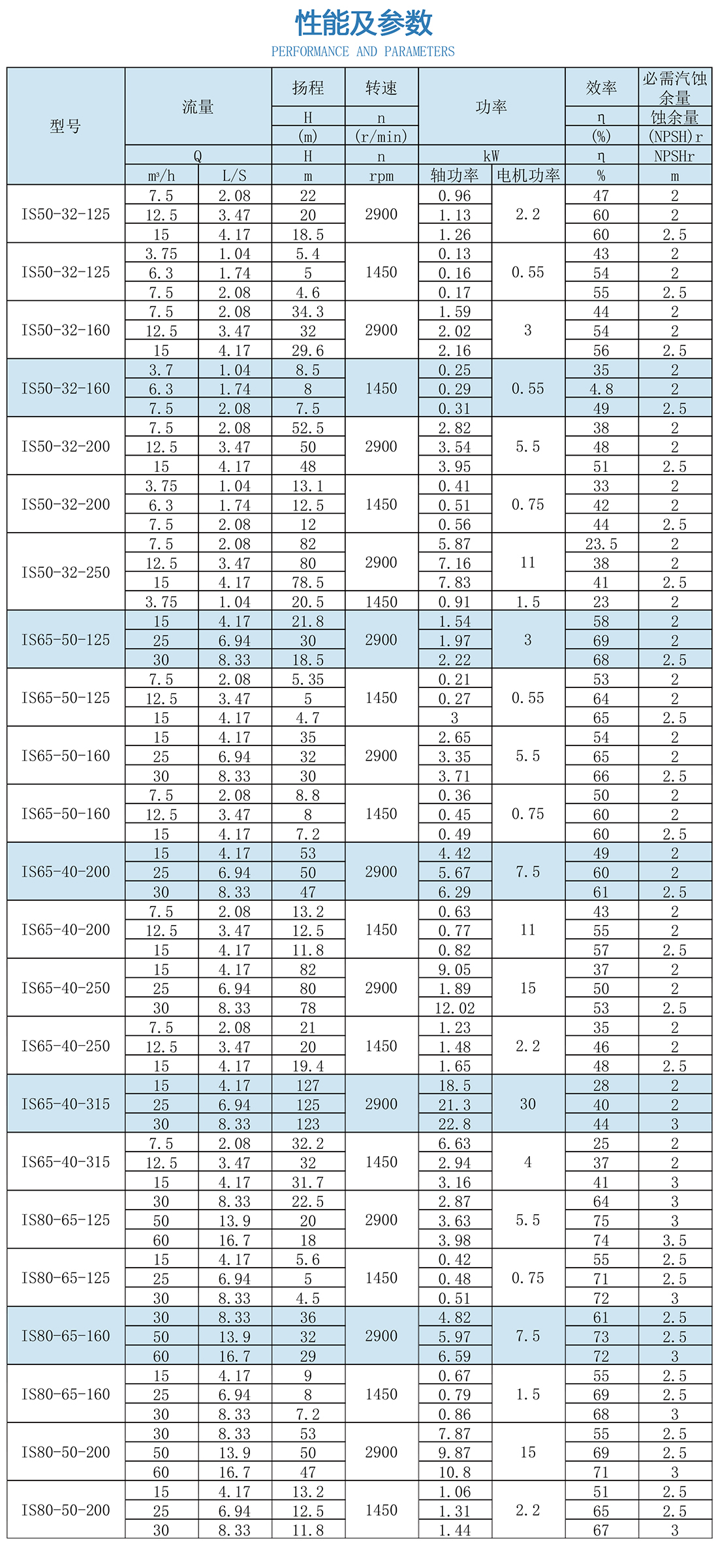 設(shè)計(jì)特點(diǎn):IS臥式清水泵運(yùn)行平穩(wěn)。優(yōu)化設(shè)計(jì)的雙吸葉輪使軸向力減小到極低的限度,且有優(yōu)異水力性能的葉型,泵殼內(nèi)表面及葉輪表面具有抗汽蝕性能。本泵結(jié)構(gòu)簡(jiǎn)單,性能可靠,?體積小,重量輕,抗汽蝕性能好,電耗低,使用維修方便。用途:供吸送清水及物理化學(xué)性質(zhì)類似水不含固體顆?粒的液體。它廣泛適用于工農(nóng)業(yè)及城市、排水、消防供水等。流量范圍:3.6m3/h-460m3/h,揚(yáng)程范圍:4m-130m,功率范圍:0.55kw-90kw。運(yùn)行溫度:-20℃—80℃。可根據(jù)實(shí)際工況要求變更配置。