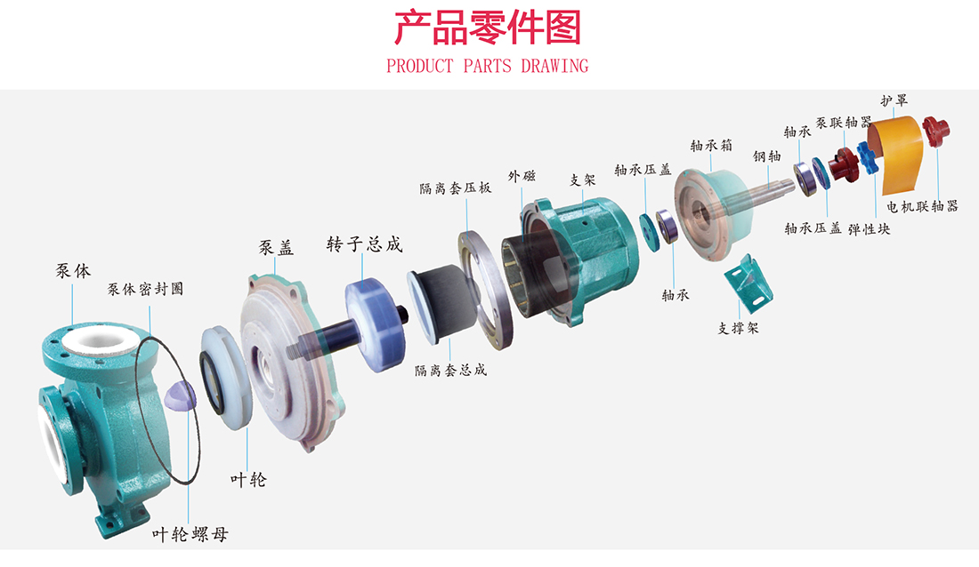 設(shè)計特點:泵室完全封閉,通過磁力偶合器間接驅(qū)動葉輪工作,取消了軸封,達到了無泄漏、無污染的工況要求。用途:可以安全輸送強酸、強堿、劇毒、有機溶劑、及純凈、貴重的化學(xué)介質(zhì),適用于各種化工流程,充分滿足嚴(yán)格的安全性、可靠性和生態(tài)環(huán)保要求。流量范圍:12.5T/h-100T/h,揚程范圍:20m-60m,功率范圍:2.2kw-18.5kw,運行溫度:-20℃—150℃。可根據(jù)實際工況要求變更配置。