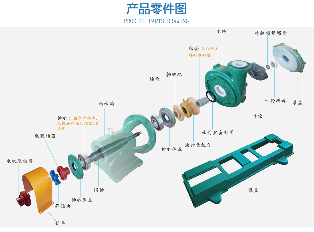 設(shè)計(jì)特點(diǎn):半開(kāi)式葉輪、單級(jí)單吸懸臂式離心泵,過(guò)流部件全部采用超高分子量聚乙烯緊襯制造,襯層不小于8mm。用途:該泵具有耐腐耐磨的優(yōu)良性能,廣泛適用于各種不同的工況,如硫酸磷肥業(yè)(磷酸料漿、含硅膠的氟硅酸、母液等);有色金屬冶煉業(yè)(鋅、鉛、金、銀、銅錳鈷稀土等濕法冶煉的各種酸液、腐蝕性礦漿料漿電解液等);水處理;鋼鐵企業(yè)等行業(yè),即適用清夜也使用料漿。流量范圍:10T/h-1600T/h,揚(yáng)程范圍:20m-50m,功率范圍:3kw-400kw,運(yùn)行溫度:-20℃—80℃??筛鶕?jù)實(shí)際工況要求變更配置。